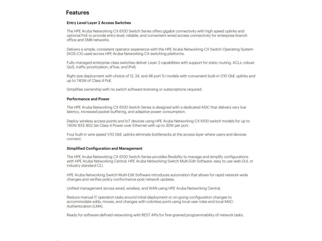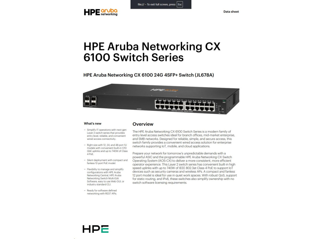 HPE Aruba Networking CX 6100 24G 4SFP+ Switch JL678A RENEW, JL678AR#ABB