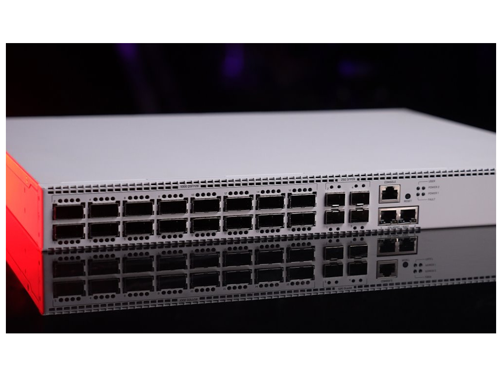 Ultrarychlý Enterprise Cloud Router Switch se šestnácti 100G QSFP28, čtyřmi 25G SFP28 a dvěma 10G RJ-45 Ethernet porty + RJ-45 konzolí. Switch poskytuje 100Gigabitové optické spojení, a je tak ideálním řešením jak pro poskytovatele internetu, tak i pro firmy či datová centra.
