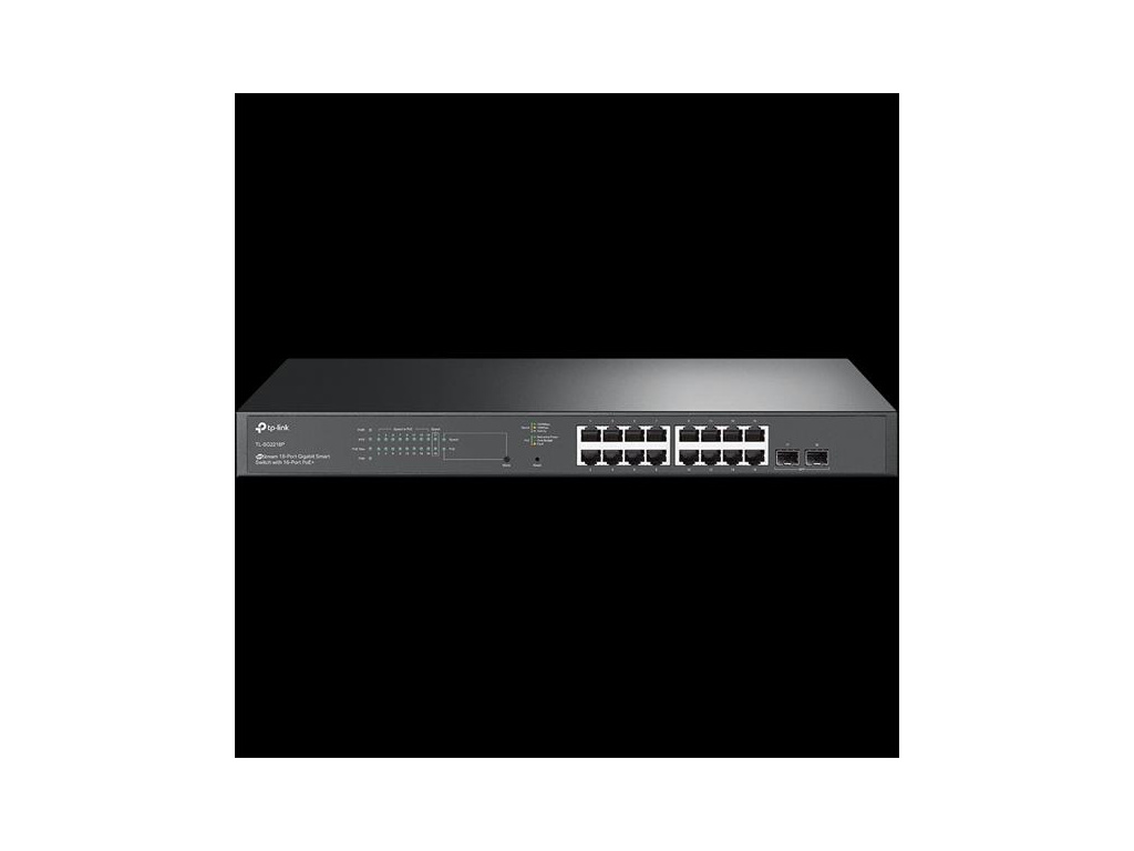 Omada 18-Port PoE+ Gigabit Smart Switch with 2 SFP Slots PORT: 16× Gigabit RJ45 Ports, 2× Gigabit SFP Slots SPEC: 802.3, SG2218P