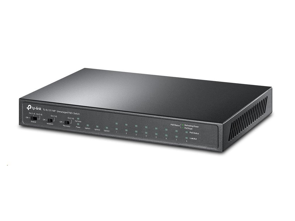TP-Link CCTV switch TL-SL1311MP (8x100Mb/s, 2xGbE uplink, 1xSFP, 8xPoE+, 124W, fanless), TL-SL1311MP