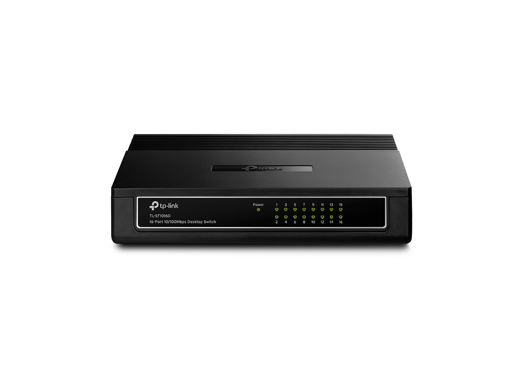 Switch TL-SF1016D Fast Ethernet je vybaven 16 porty 10/100 Mbit/s RJ45 s automatickým vyjednáváním. Všechny porty podporují funkci Auto MDI/MDIX, která eliminuje potřebu křížených kabelů nebo portů odchozího připojení (Uplink). Pomocí neblokované přepínací architektury zařízení TL-SF1005D/TL-SF1008D/TL-SF1016D předává a filtruje pakety plnou kabelovou rychlostí pro zajištění maximální propustnosti. Pomocí rámce Jumbo 10K bylo dosaženo výrazného zrychlení při přenosu velkých souborů. Řízení toku IEEE 802.3x pro plně duplexní režim a Backpressure pro poloduplexní režim zmírňují neprůchodnost sítě a zajišťují spolehlivý provoz zařízení TL-SF1016D.