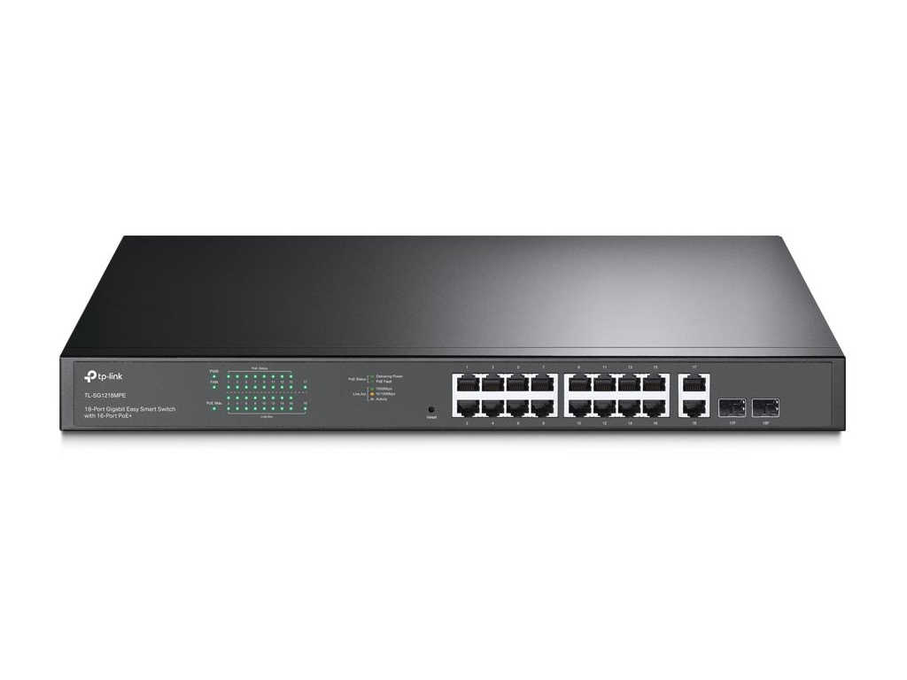 TP-Link TL-SG1218MPE/ Easy Smart Switch 16x 10/100/1000Mbps + 2x SFP/RJ-45 combo/ IGMP, QoS, VLAN/ rack, TL-SG1218MPE