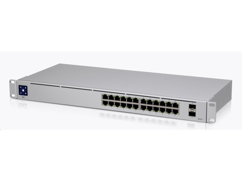 USW-24 je managovatelný Gigabitový L2 switch s montáží do 19" racku vybavený 24x Gigabit LAN porty a dvěma porty SFP s přenosovou rychlostí 1Gbps.