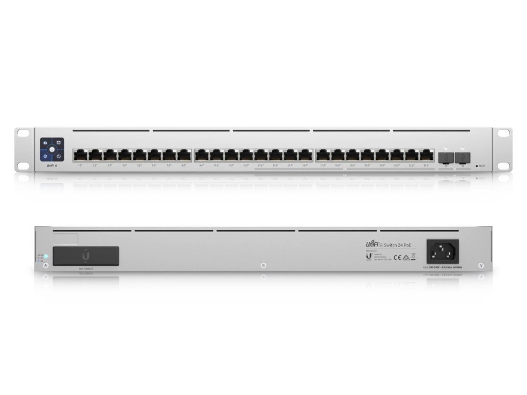 Ubiquiti UniFi Switch Enterprise 24 PoEUniFi Switch Enterprise 24 PoE je spolehlivý switch s managementem v profesionálním provedení. Jedné se o konfigurovatelný výkonný L3 přepínač s kapacitou 124 Gbps, rychlostí směrování 92,25 Mpps a 1,3" dotykovým displejem.