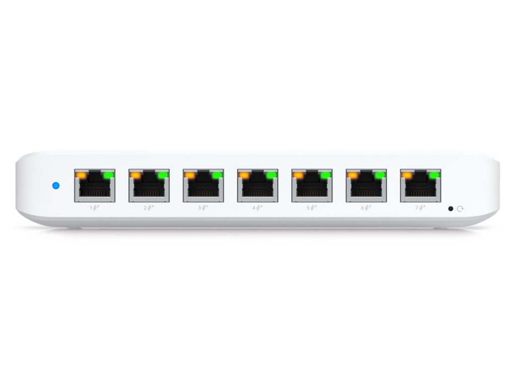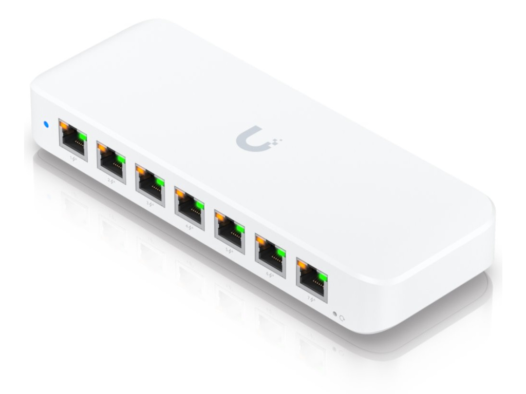 Ubiquiti UniFi Switch UltraUniFi Switch Ultra je osazen sedmi výstupními GbE PoE+ RJ-45 porty a jedním vstupním GbE PoE++ RJ-45 portem. Jedná se o L2 switch s celkovou kapacitou 16 Gbps, neblokovanou propustností 8 Gbps a PoE budgetem až 202 W (v závislosti na typu napájení). Switch lze napájet buď přes DC konektor (54 V DC), nebo přes PoE++ (802.3at/bt) vstup na zadní straně. Díky přiloženému držáku jej lze snadno upevnit na stěnu.