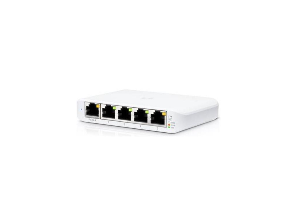 USW-Flex-Mini je maličký 5-portový Gigabitový switch se správou přes UniFi Controller od Ubiquiti Networks v desktop provedení s prvním portem podporující PoE In.PoE IN na Eth1