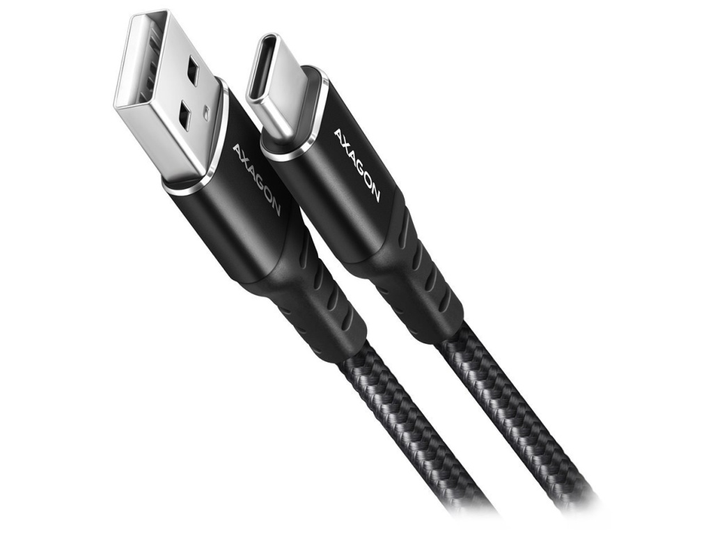 AXAGON datový a nabíjecí kabel USB-A na USB-C / USB2.0 / 3A / opletený / 2m / černý, BUCM-AM20AB