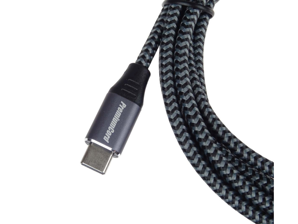 PremiumCord kabel USB-C - USB 3.0 A (USB 3.1 generation 1, 3A, 5Gbit/s) 2m bavlněný oplet a kovové hliníkové konektory