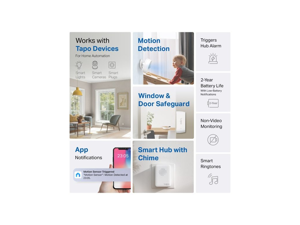 TP-Link Tapo T30 KIT V1.2 je všestranná sada pro domácí automatizaci navržená pro zvýšení bezpečnosti a pohodlí vašeho obytného prostoru. Díky funkcím, jako je ovládání alarmu, ovládání světla a detekce pohybu, nabízí komplexní řešení pro monitorování a správu vašeho domácího prostředí. Kompatibilita s aplikacemi Alexa a Google Assistant umožňuje bezproblémové hlasové ovládání a hladkou integraci do vaší inteligentní domácí sestavy. Součástí sady je SmartHub, kontaktní čidlo a čidlo pohybu, které lze snadno spravovat prostřednictvím aplikace Tapo, což je uživatelsky přívětivé. Ať už chcete svůj domov zabezpečit, nebo jej jednoduše učinit inteligentnějším, sada Tapo T30 KIT V1.2 představuje efektivní způsob, jak dosáhnout svých cílů. Inteligentní integrace Díky kompatibilitě s Alexou i Google Assistant se tato sada pro domácí automatizaci integruje do vašeho stávajícího ekosystému chytré domácnosti a umožňuje hlasové ovládání a lepší propojení. Komplexní zabezpečení Díky řadě funkcí včetně ovládání alarmu, ovládání světla a detekce pohybu je tato sada navržena tak, aby nabízela komplexní bezpečnostní řešení. Zahrnutí oznámení v reálném čase zajišťuje, že budete vždy informováni o stavu zabezpečení vašeho domova. Snadná instalace Díky bezdrátovému připojení a komponentům napájených z baterie je nastavení systému domácí automatizace jednoduché. Aplikace Tapo tento proces dále zjednodušuje, neboť vás provede každým krokem a zajistí vám uživatelsky přívětivý zážitek. Všestranné ovládání Díky 19 volitelným vyzváněcím tónům a bzučáku o hlasitosti 90 dB vás tato sada nejen upozorní na narušení bezpečnosti, ale také umožňuje přizpůsobení podle vašich preferencí. Indikátor LED a tlačítko SYNC/tichý režim přidávají další vrstvu uživatelské kontroly. Spolehlivý výkon Tato sada je navržena pro provoz v širokém rozsahu podmínek prostředí a zajišťuje spolehlivý výkon při provozní vlhkosti v rozsahu 10-90 % relativní vlhkosti a teplotách od 0 °C do 40 °C. Její shoda s normami R-NZ, RoHS a UKCA svědčí o její kvalitě a bezpečnosti. Název produktu: TP-LINK Smart Sensor Starter Kit Tapo H100 x1 + Tapo T100 x1 + Tapo T110 x2 Popis: Tapo T30 KIT V1.2 - Starter Kit - domácí automatická sada - inteligentní - bezdrátový - 2.4 Ghz, 868 MHz EAN: 8885020624670 Záruka výrobce: 24 měsíců Bring-In záruka Obecně Typ výrobku: Domácí automatická sada Určeno pro: Systém alarmu, ovládání kamery, detektor, ovladač přístupu dveřmi, řízení dveří Funkce: Regulace světla, ovládání alarmu, detekce pohybu Zdroj napájení: Baterie Obsah balení: Kontaktní čidlo, pohybové čidlo, SmartHub Technologie konektivity: Bezdrátový Kmitočtové pásmo: 2.4 Ghz, 868 MHz Vlastnosti: Upozornění v reálném čase, LED indikátor, tlačítko SYNC/ztišení, bzučák 90dB, 19 volitelných vyzvánění Internet of Things (IoT) Internet of Things (IoT) Compatible: Ano Komptibilita rozbočovače: Tapo Hub Kompatibilní aplikace: Tapo app Platforma: Tapo, Matter Chytrý asistent: Alexa, Google Assistant Různé Dodávané příslušenství: Lepicí pásek, baterie CR2450, 2 baterie CR2032 Materiál produktu: UL94-V0 Provozní spotřeba energie: 0.5 Watt Odpovídající standardům: UKCA, RoHS, R-NZ Rozměry a hmotnost Podrobné údaje o rozměrech a váze: Rozbočovač: 6.25 cm x 5.1 cm x 7.2 cm Pohybové čidlo: 4.23 cm x 4.23 cm x 3.4 cm Kontakt snímače přístupu: 3.75 cm x 6.14 cm x 1.23 cm Parametry životního prostředí Min provozní teplota: 0 °C Maximální provozní teplota: 40 °C Provozní rozsah vlhkosti: 10 - 90% RH (non-condensing) Technické údaje nám pro informační účely poskytují třetí strany. Nepřijímáme žádnou odpovědnost za chyby v těchto údajích. HARDWAROVÉ VLASTNOSTI LED indikátor Ano FIZICKÉ VLASTONOSTI Provozní teplota 0~40 °C Rozměry (VXŠXH) Pohybový senzor: 42,3 x 42,3 x 34 mm Kontaktní senzor: 61,4 x 37,5 x 12,3 mm Náboj: 72 x 62,5 x 51 mm Hmota UL94-V0 zpomalovač hoření OBSAH BALENÍ Obsah balení: Tapo H100 × 1 Tapo T100 × 1 Tapo T110 × 2 knoflíková baterie CR2450 × 1 knoflíková baterie CR2032 × 2 3M lepidla × 7 Rychlý průvodceEAN: 8885020624670
