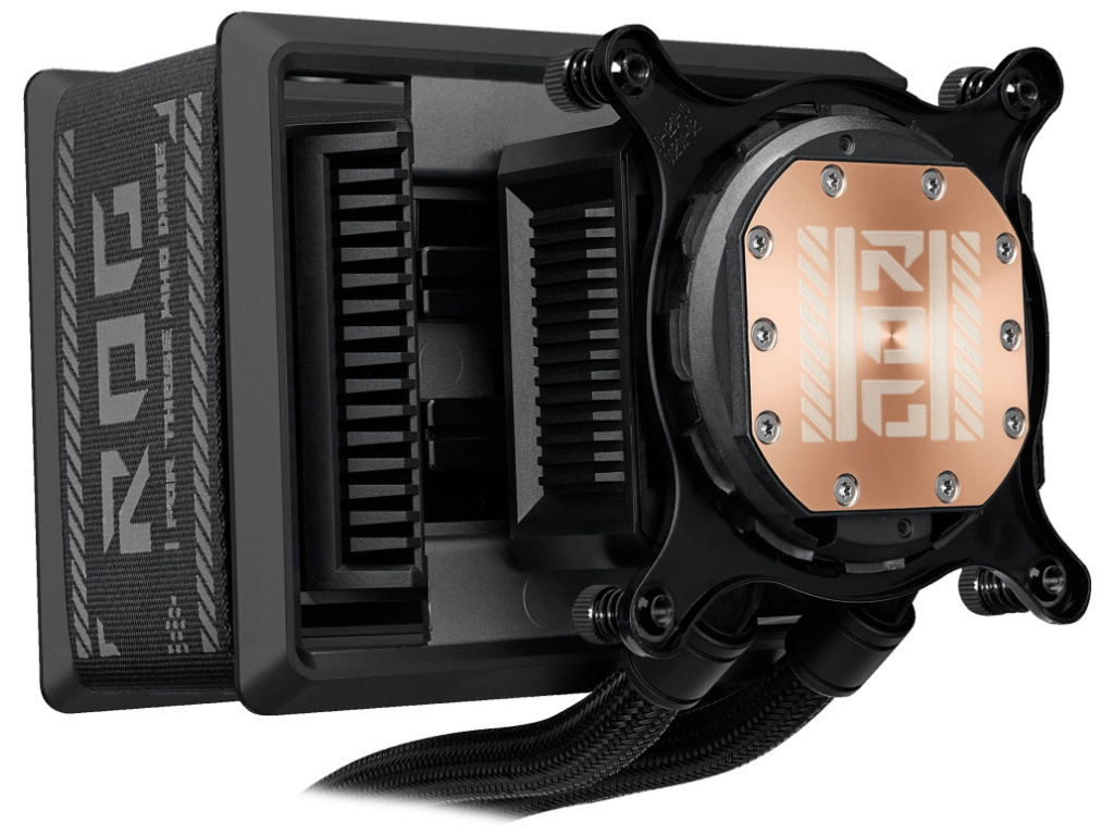 Kompletní chladicí soustava zahrnuje výkonné čerpadlo s otáčkami 1800–3200 ot./min, hliníkový radiátor a tři ARGB ventilátory s vysokým statickým tlakem 5,45 mm H2O a průtokem vzduchu 71,44 CFM. Speciálně zkrácené 200mm hadice s textilním opletením a posuvný LCD panel minimalizují překážky v sestavě a maximalizují vizuální dojem.