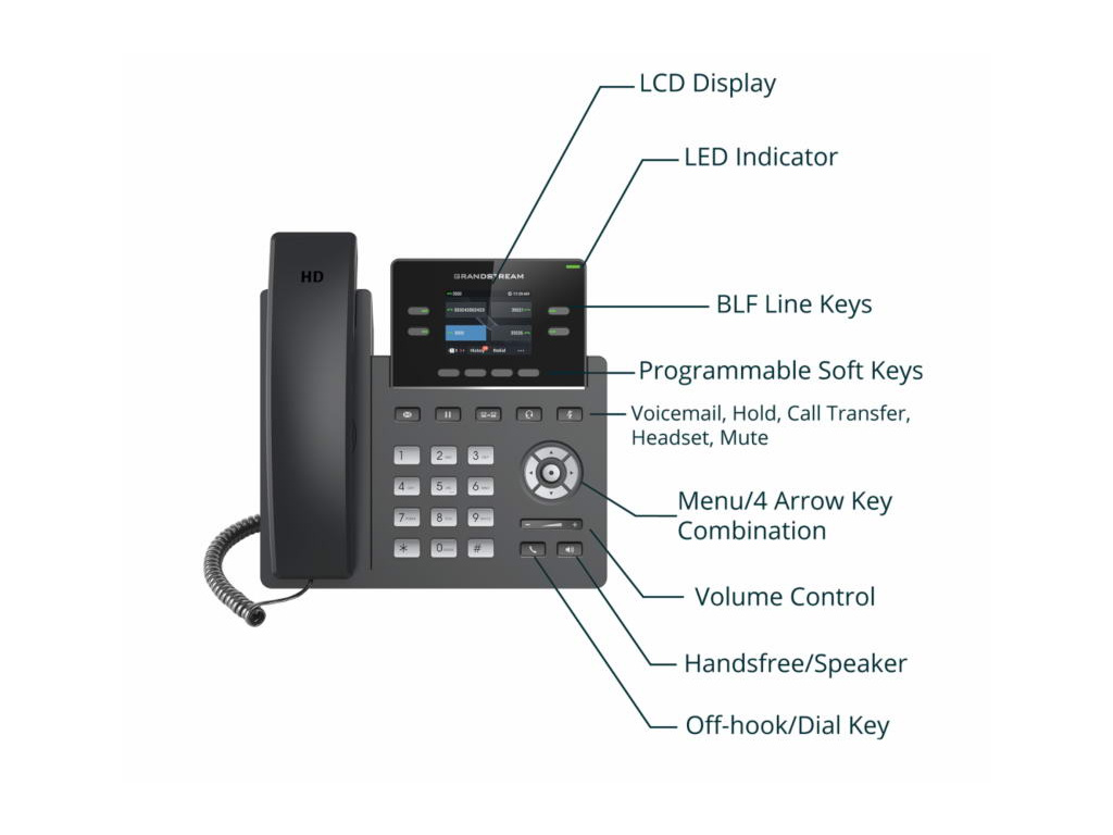 Zařízení GRP2612W je dvouřádkový IP telefon z řady adaptabilních VoIP telefonů, podporující 2 SIP účty a 4 víceúčelová tlačítka. Telefon je navržen a sestrojen speciálně pro potřeby všech vytížených pracovníků. Nespornou výhodou telefonu je jeho velmi snadné ovládání a podpora WiFi. Telefon disponuje elegantním designem barevným LCD displejem. Výhodou je též jednoduchá výměna přední desky, která umožňuje snadné přizpůsobení loga. Telefon obsahuje bezpečnostní funkci určenou operátorům, která zajišťují podnikovou bezpečnost a to včetně bezpečného spuštění, duální firmware a šifrované ukládání dat. Zařízení je podporováno GDMS (Grandstream’s Device Management System), který poskytuje centralizované rozhraní pro konfiguraci, poskytování, správu a monitorování koncových bodů Grandstream. GRP2612W disponuje mnoha funkcemi, mezi které patří: přesun hovoru, čekání hovoru, automatická odpověď, flexibilní plán vytáčení, vyzvednutí hovoru, SCA, BLA, telefonní seznam až pro 2 000 kontaktů, personalizované vyzvánění. Telefon má k dispozici stojan, který je možno polohovat ve dvou různých úhlech. Telefon lze namontovat na zeď (montáž na zeď je prodávána samostatně). Zařízení podporuje mnoho jazyků, samozřejmostí je také čeština a slovenština. Pozor - telefon je dodáván bez adaptéru, který je volitelným příslušenstvím! Hlavní benefity zařízení: Telefon má zabudované duální pásmo. Samozřejmostí je podpora HD audia, a to včetně širokopásmových kodeků G.722 a Opus. 16 virtuálních víceúčelových klíčů ( VPK). Síťová rozhraní: Duální spínací automatické snímání 10/100 Mbps, Ethernetové porty. Barevný LCD displej 320x240 mm. QoS (Quality of Service): vrstva 2 QoS (802.1Q, 802.1P) a vrstva 3 (ToS, DiffServ, MPLS) QoS Hesla na úrovni uživatelů a administrátorů, autentizace založena na MD5 a MD5-sess na základě ověření, 256bitový AES šifrovaný konfigurační soubor, SRTP, TLS, 802.1x řízení přístupu k médiím, bezpečný boot.EAN: 6947273702825