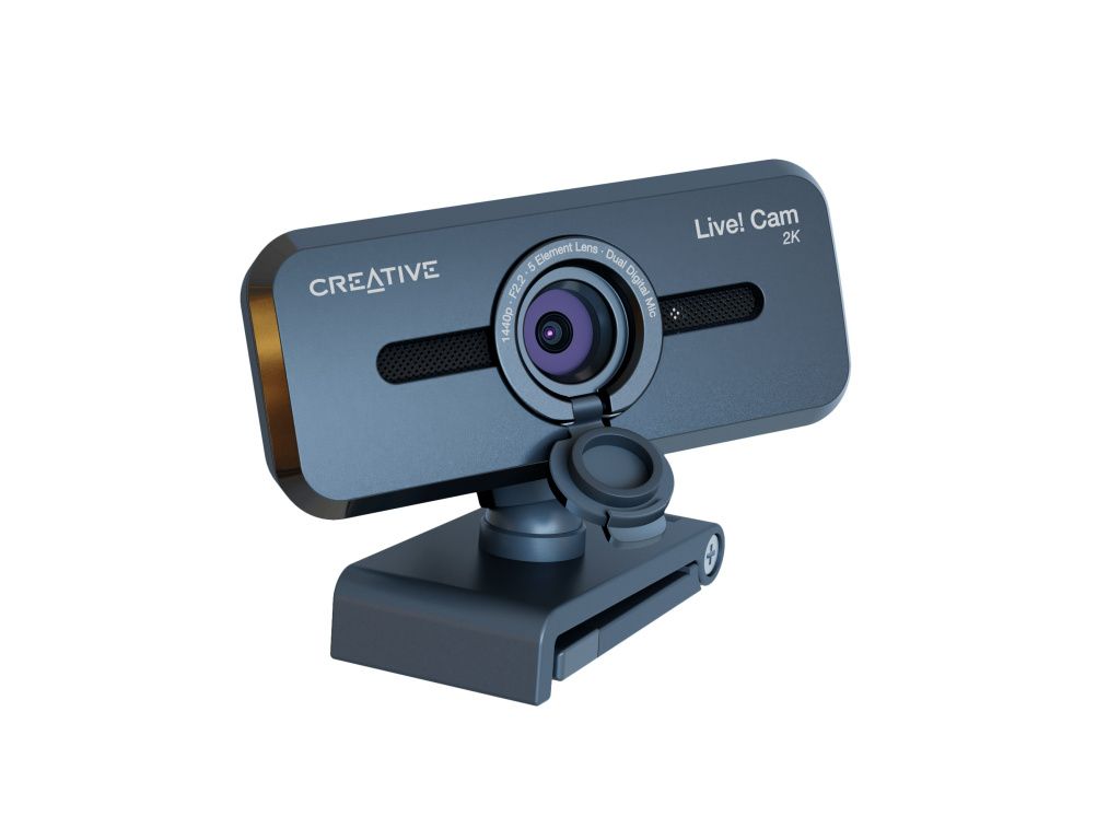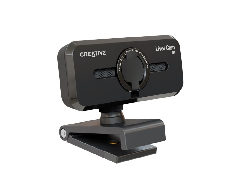 Creative Live! Cam Sync V3 webová kamera 2K QHD se 4x digitálním zoomem a vestavěnými mikrofony Ať už webovou kameru montujete na počítač nebo na stativ, je plně nastavitelná s horizontálním otáčením o 360° a náklonem o 30°.