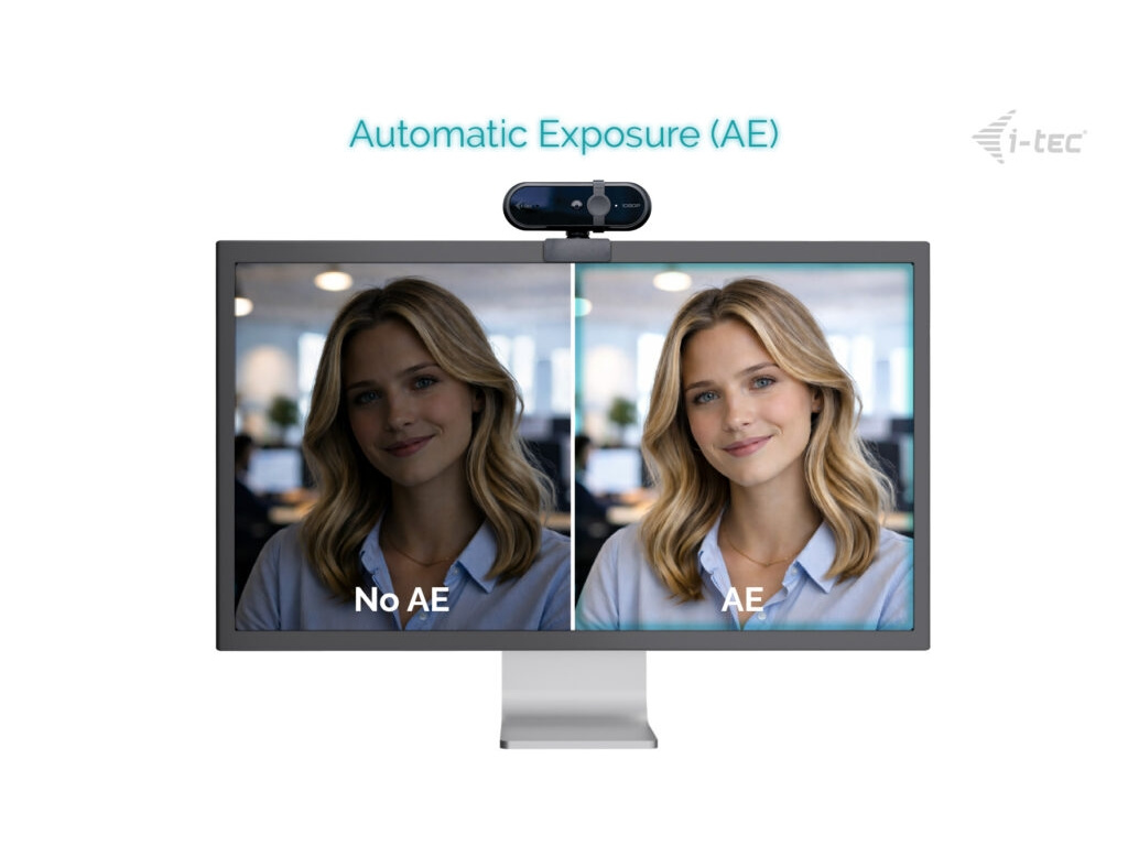 Automatická expozice (Automatic Exposure – AE) se automaticky přizpůsobuje změnám světelných podmínek a upravuje jas a kontrast tak, aby byl snímaný objekt vždy dobře viditelný – bez přepalů nebo tmavých stínů a bez nutnosti ručního zásahu.