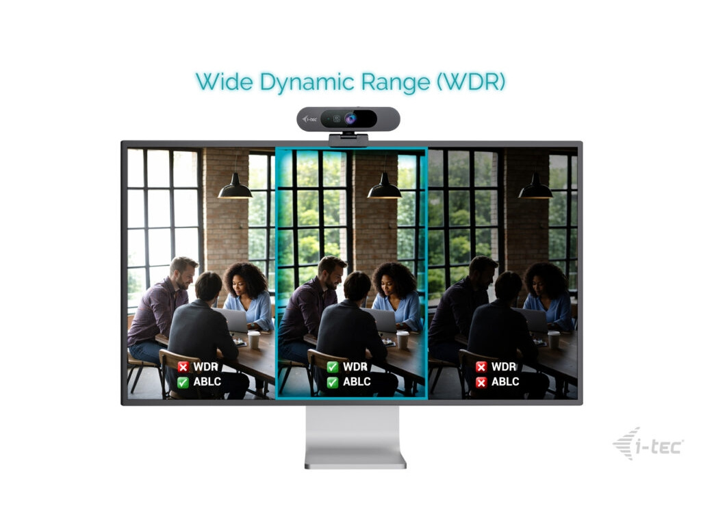 Auto Framing, WDR, digitální zoom a režim Picture-in-Picture (automatické rámování inteligentně přibližuje aktivního řečníka nebo osobu v záběru, zatímco Picture-in-Picture současně zobrazuje celý, nezvětšený obraz. Díky tomu je klíčová akce jasně zvýrazněna, aniž by se ztratil celkový kontext). Tyto vlastnosti činí kameru