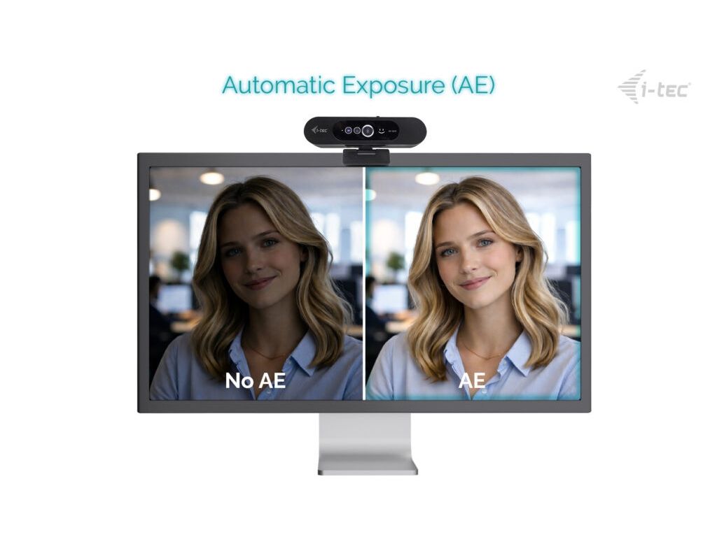 Automatická expozice (Automatic Exposure – AE) se automaticky přizpůsobuje změnám světelných podmínek a upravuje jas a kontrast tak, aby byl snímaný objekt vždy dobře viditelný – bez přepalů nebo tmavých stínů a bez nutnosti ručního zásahu.