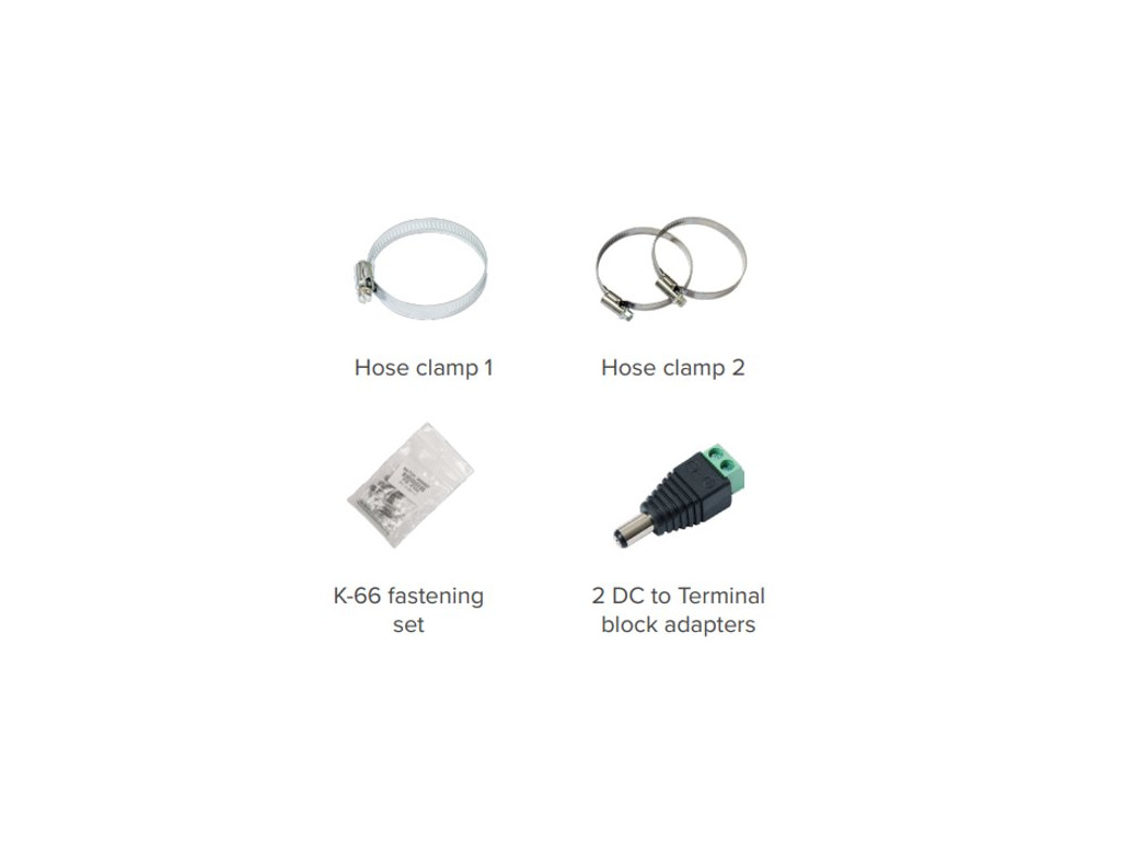 Součástí switche je MikroTik RouterOS/SwitchOS a plnohodnotná licence L5. V balení jsou pásky k uchycení na sloup. Napájecí adaptér není součástí balení.