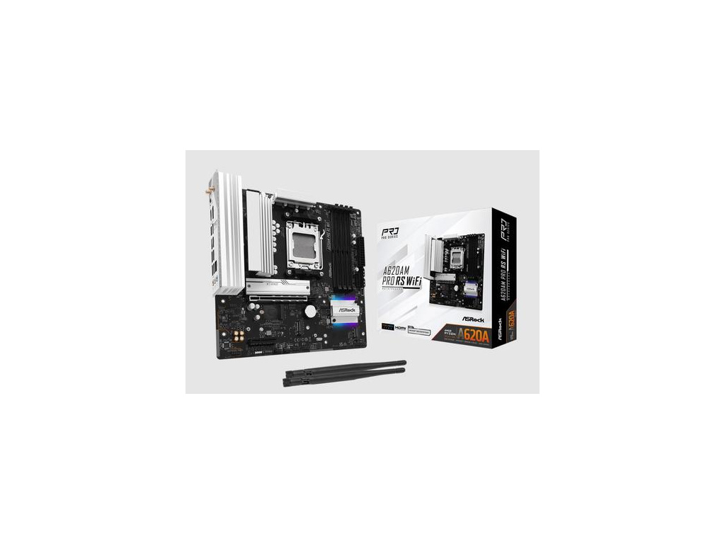 ASROCK A620AM PRO RS WIFI (AM5, amd A620A, 4xDDR5 7200MHz, PCIE 4.0, HDMI+DPort, 2xSATA3 +3xM.2, USB3.2 G1, 1x2.5GLAN, mATX), A620AM PRO RS WIFI