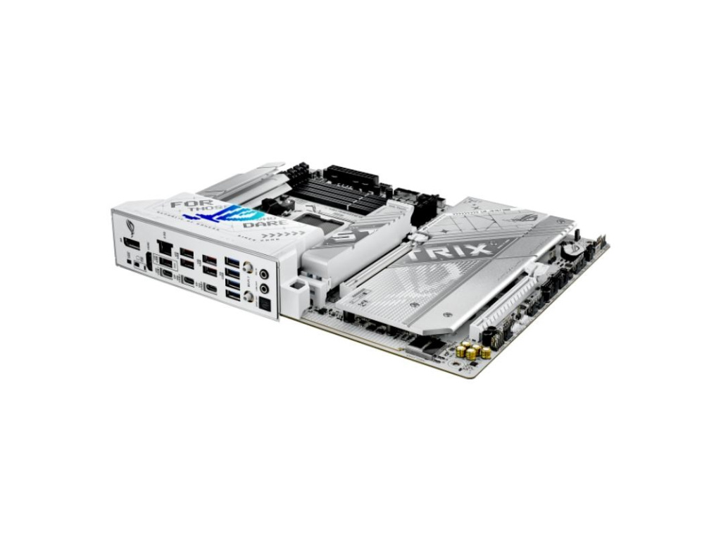 The ROG Strix X870-A stands out with its striking white PCB, offering a fresh and modern aesthetic that seamlessly complements almost any system build. The matching metallic heatsinks enhance its clean, crisp look, while subtle RGB lighting on the I/O shroud allows you to either maintain a sleek, understated appearance or showcase a bold, luminous design.