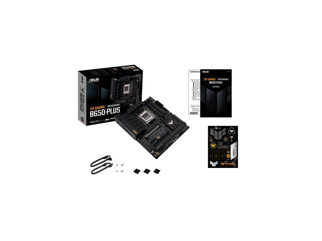 ASUS TUF GAMING B650-PLUS takes all the essential elements of the latest AMD Ryzen 7000-series processors and combines them with game-ready features and proven durability. Engineered with military-grade components, an upgraded power solution and a comprehensive cooling system, this motherboard goes beyond expectations with rock-solid and stable performance for marathon gaming. TUF GAMING motherboards also undergo rigorous endurance testing to ensure that they can handle conditions where others may fail. Aesthetically, this model incorporates rugged off-black and geometric design elements to reflect the dependability and stability that defines the TUF GAMING series.