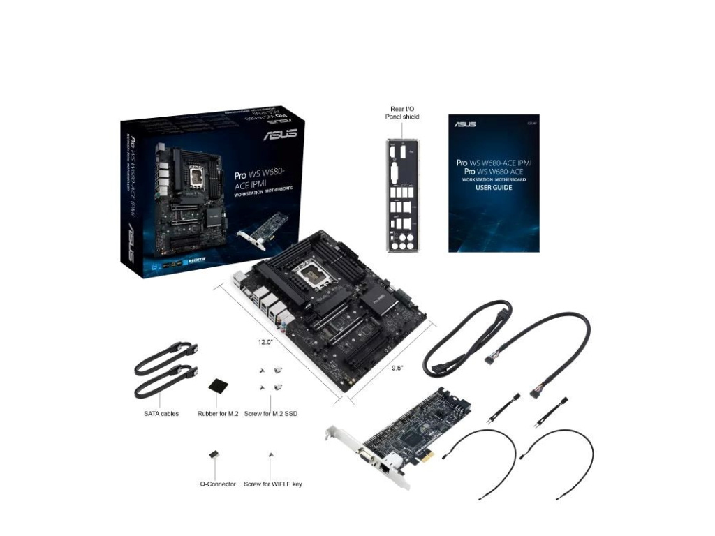 Intel W680 (LGA 1700) ATX motherboard, PCIe 5.0, DDR5, IPMI expansion card, dual Intel 2.5 Gb Ethernet, PCIe 4.0 M.2, USB 3.2 Gen 2x2 front panel connector, SlimSAS, SATA 6 Gbps, HDMI, DisplayPort and VGA