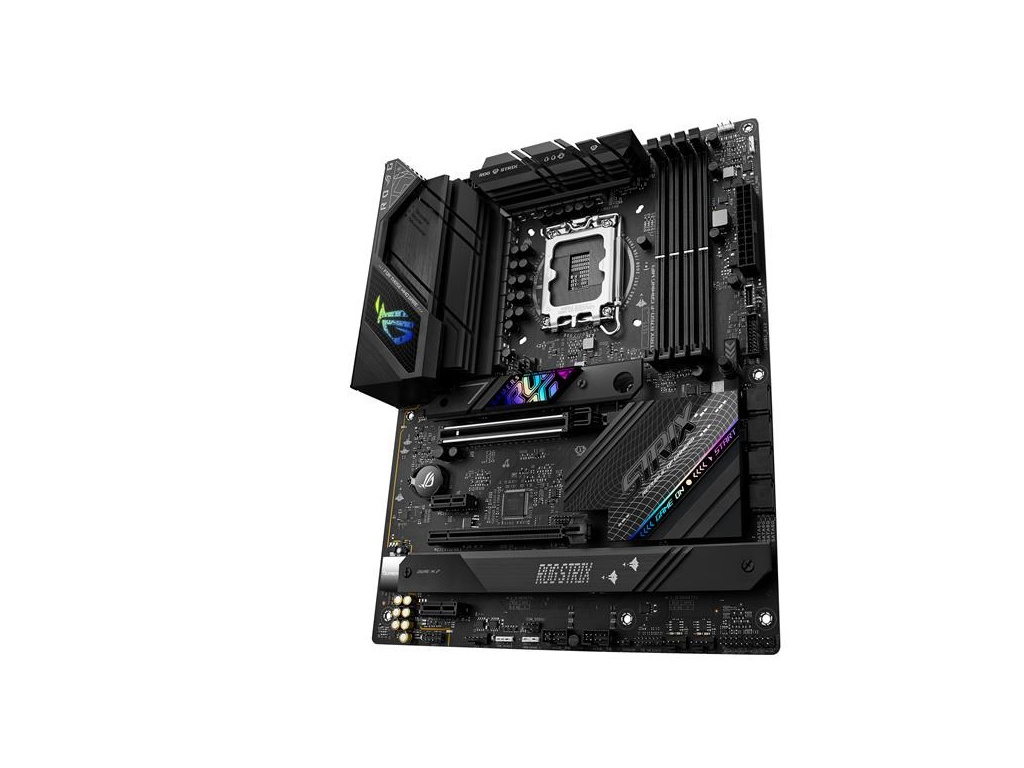 Leap into the future with the ROG Strix B760-F, a fantastic upgrade into 14th Gen with its dominant power solution and best-in-class DDR5 speeds. Its next-gen PCIe 5.0 slot gives overwhelming graphics card throughput for maximum FPS, and you can minimize lag via hyperfast WiFi 6E or 2.5G LAN. All these perks come alongside distinctive rainbow stripes and retro accents so you can show off your gamer pride.