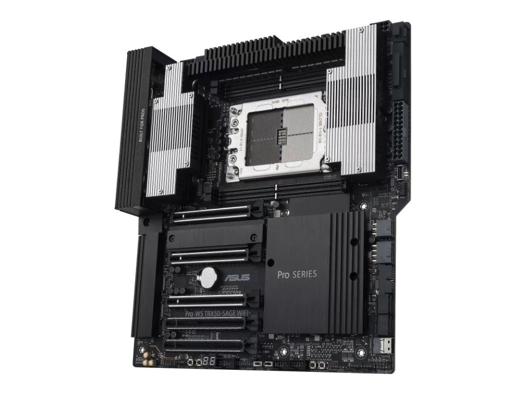 AMD TRX50 CEB workstation motherboard, CPU and memory overclocking ready, robust 36 power-stage design, PCIe 5.0 x 16, PCIe 5.0 M.2, 10 Gb and 2.5 Gb LAN, multi-GPU support