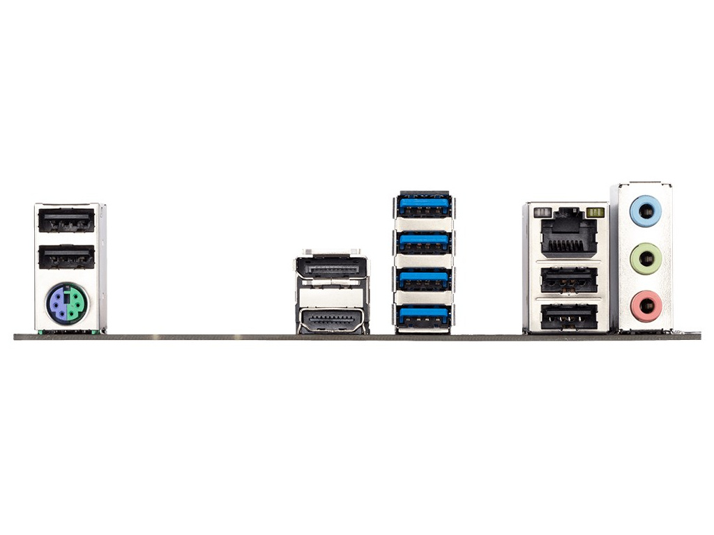 | Back Panel Connectors | 1 x PS/2 keyboard/mouse port 1 x DisplayPort 1 x HDMI port 4 x USB 3.2 Gen 1 ports 4 x USB 2.0/1.1 ports 1 x RJ-45 port 3 x audio jacks |