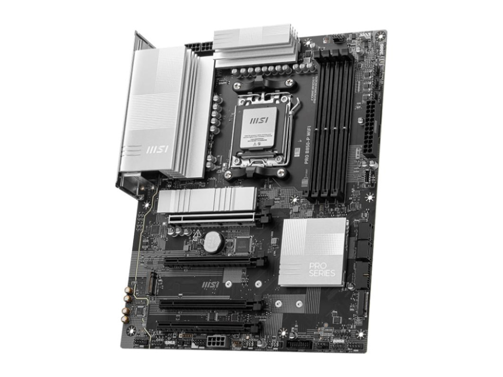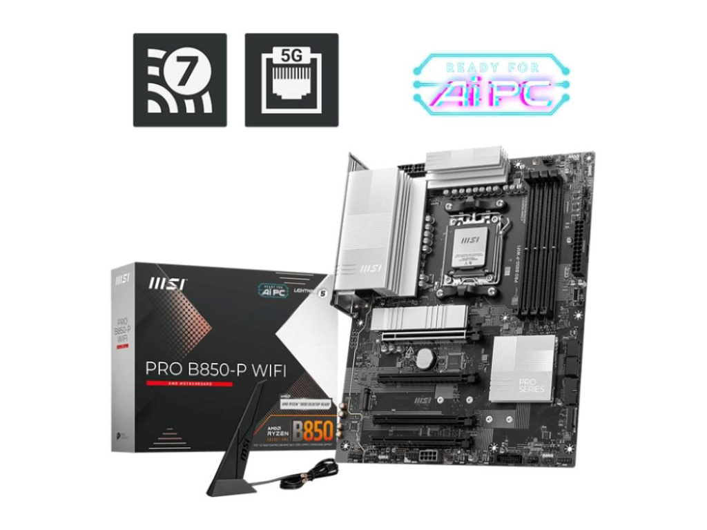 PRO B850-P WIFI offers a simple design with a harmonious silver color scheme that perfectly matches both white and black PC builds. It is engineered with many exclusive features of MSI, a true Wi-Fi 7 with EZ Antenna, 5G LAN, PCIe 5.0 M.2 with EZ M.2 Shield Frozr II, and Supplemental PCIe Power, ready for the AMD Ryzen™ 9000 series processors.
