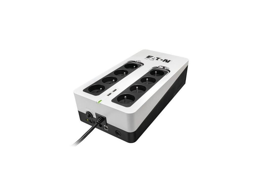 Eaton 3S700FUPS Eaton 3S pomáhá chránit vaši výpočetní techniku v případě výskytu nežádoucích jevů a událostí, jako jsou atmosférické výboje, bouřky, přetížení rozvodné sítě, poruchy a živelné události, způsobující bez předchozího varování výpadky napájení z elektrorozvodné sítě. Při úplném výpadku poskytuje UPS záložní napájení z baterie až čtyřem z osmi připojitelných zařízení. Tento záložní zdroj též chrání telefonní, širokopásmové a Ethernetové připojení proti přepětí. Software pro odstavení umožňuje automatické uložení rozpracovaných úloh a ukončení vašich aplikací bez ztráty dat díky propojení USB portem. Po obnovení napájení budete moci pokračovat přesně z bodu, ve kterém jste aplikaci ukončili. Díky atraktivnímu designu a líbivé povrchové úpravě UPS 3S dokonale zapadne do moderního kancelářského prostředí.
